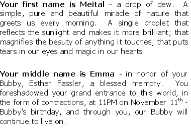December 1, 2000 - Baby Naming Service for Meital Emma Rosenzveig