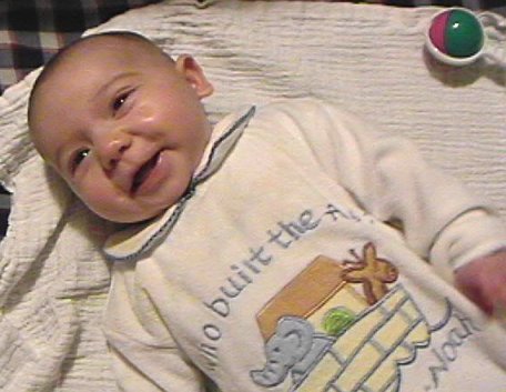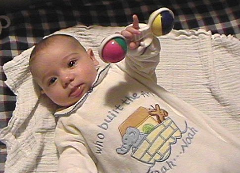 She's just starting to hold things, although we still have to put the toy in her hand. Soon she'll be grabbing it from us, I'm sure!
