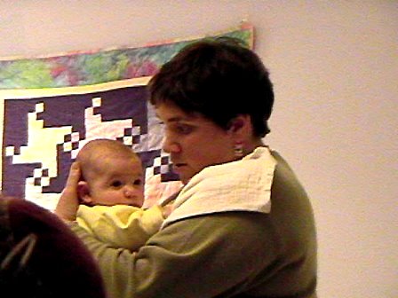 Polly, the childbirth class teacher, checks my final exam. I think I've earned an excellent grade!!